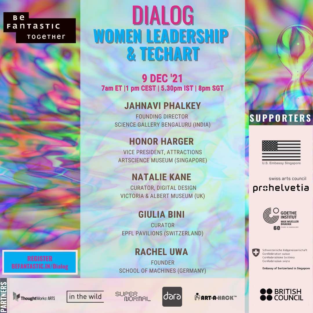 Taking a cue from Dr. Patricia Gestoso from the Kaspersky report saying “you can’t be what you can’t see” this Dialog seeks to discuss the trajectories of women leaders at various intersections of art and technology so as to make these paths visible to a new generation of women who might be drawn towards these fields.